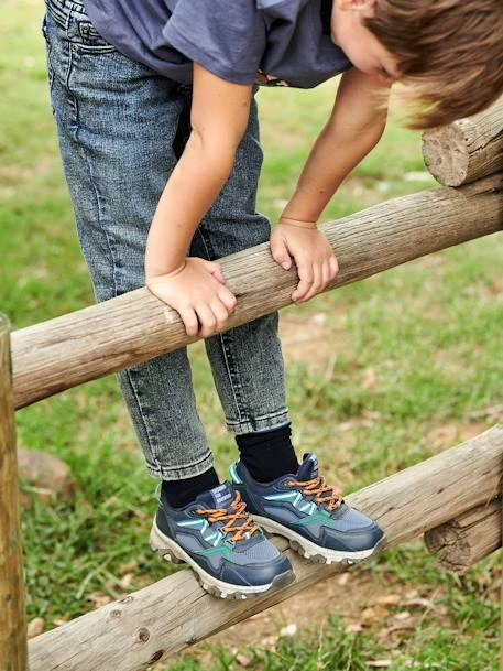 Lacets colorés, effets de matières, semelle crantée avec fantaisie mouchetée, nombreux détails de style et de confort… Esprit randonnée et look montagne pour des baskets taillées pour l’aventure !