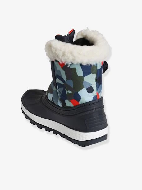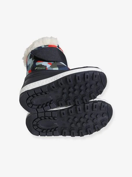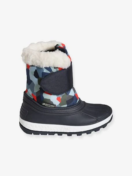 - Dessus : synthétique sur membrane aluminium pour garantir l’imperméabilité, coque en élastomère, tige en synthétique imprimé et col en textile fausse fourrure