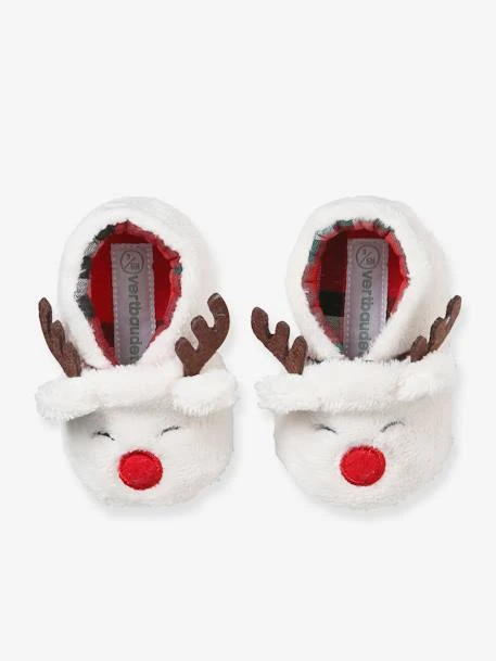Cap sur la douceur et la fantaisie avec des chaussons vraiment trop mignons : une tête de renne est brodée, les bois et les petites oreilles dépassent… de quoi amuser les petits pieds à Noël tout en les réchauffant !
