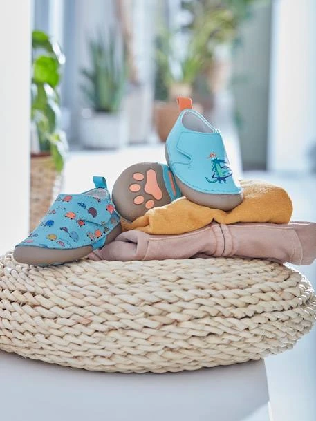 Faciles à enfiler, ces chaussons en cuir très souple s’offrent de jolies couleurs… et un crocodile surfeur pour amuser bébé. Une création exclusive pour le confort et le bien-être des petits pieds.