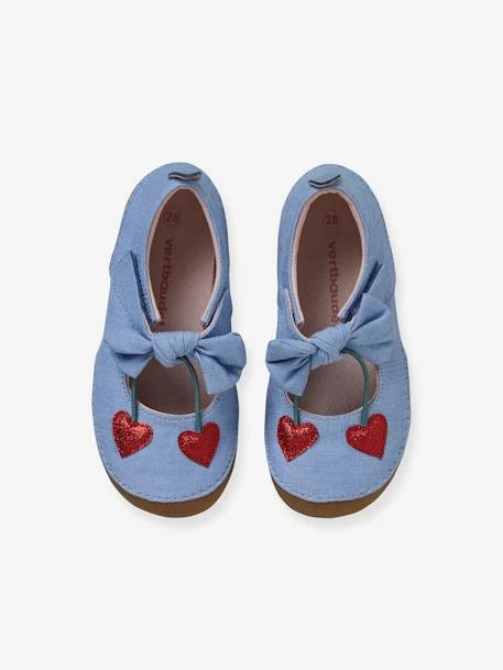 - Dessus : textile, application cerises en forme de coeur en paillettes avec tiges élastiquées reliées à la patte auto-agrippante par noeud fantaisie