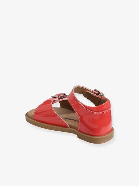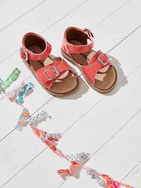 Un modèle de sandales avec ouverture totale, c’est plus facile à enfiler. Bout ouvert mais talon fermé, c’est plus rassurant ; semelle intérieure cuir, c’est plus confortable… et finition vernie, c’est plus joli !
