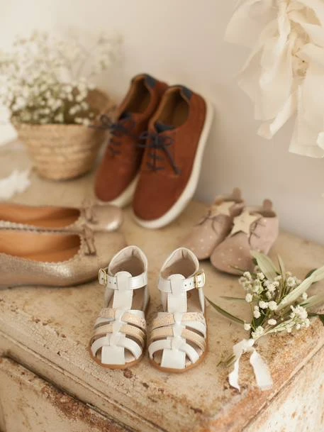 Un confort aéré, un maintien parfait… et des petits pieds joliment protégés même quand il fait chaud ! Sandales en cuir conçues pour accompagner au mieux bébé dans ses premiers pas.