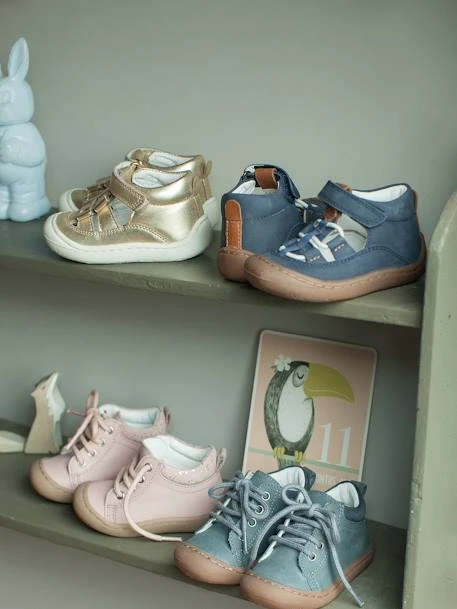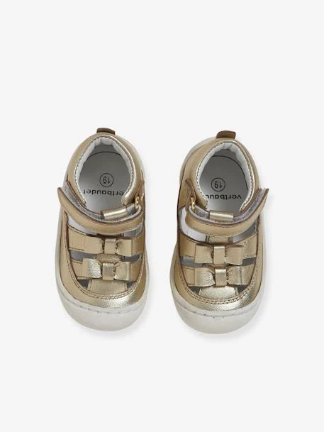 Parfaites pour des premiers pas réussis, ces sandales en cuir associent confort aéré, excellent maintien et liberté de mouvement. Très souples, elles permettront d’accompagner l’évolution du pied de bébé vers la marche en assurant un bon développement durant ses moments de jeu et de déplacements. Une création exclusive pour le confort et le bien-être des petits pieds… avec un look doré et des détails noeud qui signent une belle allure girly !